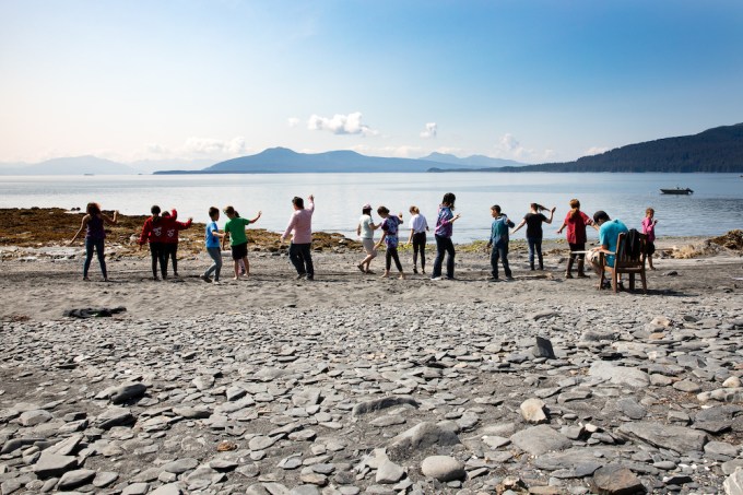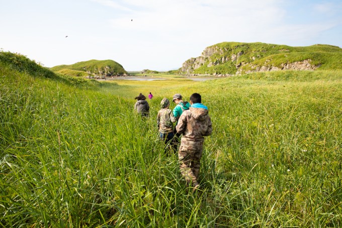 Kodiak NWR was my first stop. It is an archipelago of islands, a compact space that has several unique ecosystems ranging from temperate forest in the north, high mountains in the center, and tundra and rolling hills in the south. It has an epic amount of coastline, rivers and lakes, so travel around Kodiak was mostly done in sea plane. We encountered the incredible Kodiak brown bear at Frazer Lake, hiked through prolific sockeye salmon streams on Karluk Lake, created a mural on paper and painted faces of kids in Akhiok, visited the 102-year-old functioning cannery at Cape Alitak, traced the contours of the petroglyphs of Alutiiq ancestors, taught nature sketching at Dig Afognak kids camp and witnessed the kids dancing, drumming and crafting their love of their Alutiiq heritage.