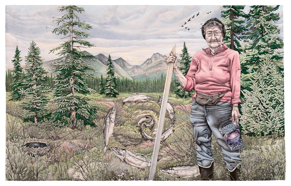 Alaska is a place beyond words. And its people reflect the essence of the land and waters in their daily actions. This short film is a compilation of video clips I have captured on my phone from various locations around Alaska – Kodiak Island, Kuskokwim River, Arctic National Wildlife Refuge, Yukon River, Fort Yukon, Selawik, amongst others from 2016-2019. These candid moments with people like Julie Mahler and May Walton share a quick glimpse into the beauty and wisdom I have witnessed in Alaska’s people, and the honor it is to share it in my artwork. Enjoy.