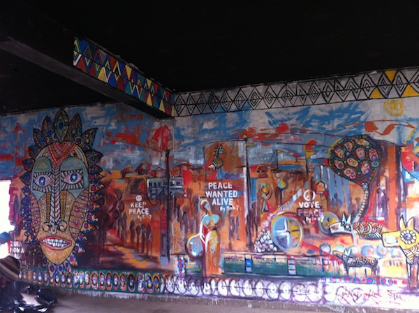 The team of artists completed four murals in three different parts of the country: Osoit Primary School in Maasai village Namelok, Evelyn College of Design in Nairobi, a children’s shelter and school in Kibera, and a historic blown out building in Kibera